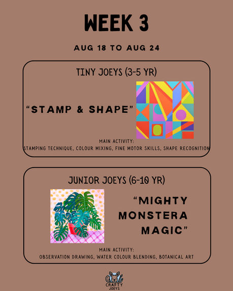 "We had an amazing time at the Crafty Joeys where kids dove into the world of colours, shapes, and imagination. The highlight of the session was Kaley, the art teacher, whose warmth and patience made the experience unforgettable. With a smile on her face and gentle encouragement, Kaley guided the kids through various artistic techniques, helping them explore their creativity."